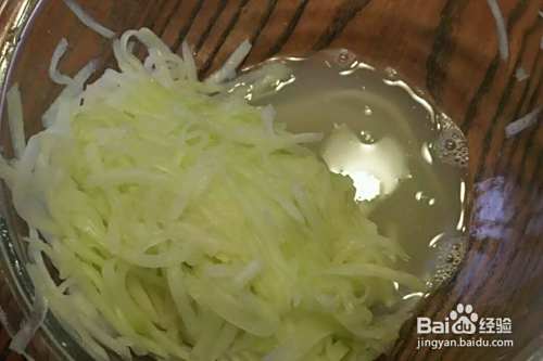 20分钟过去了,看看,挤一挤,这么多水。辛辣的味道都在里面,挤出来倒掉,然后还可以冲洗一下萝卜丝。