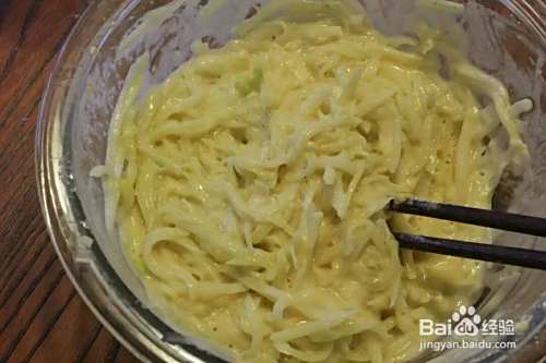 调好后是这样的。浓厚的面糊裹着萝卜丝。
