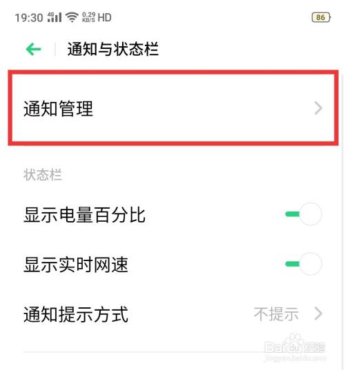 此时,界面会显示出很多选项,我们选择其中的“通知管理”这个选项,点击打开。