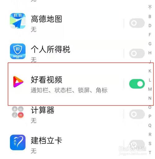 接下来,在目录里找到我们要设置的软件,观看它后面的“滑块”颜色,此时为绿色,代表已经打开了推送消息,我们只需要点击一下滑块就可以。