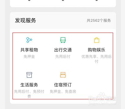 在支付分界面,点击发现服务里面项目进行兑换使用即可。