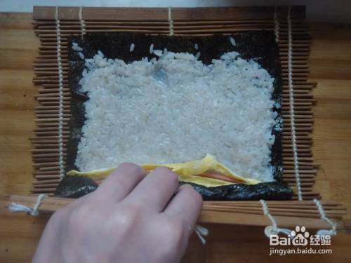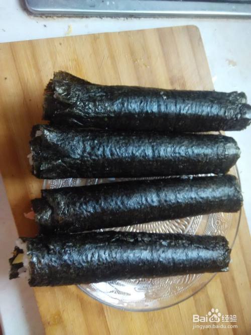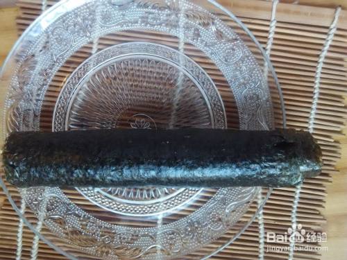 用寿司帘慢慢讲其卷起,要尽量卷的紧些。