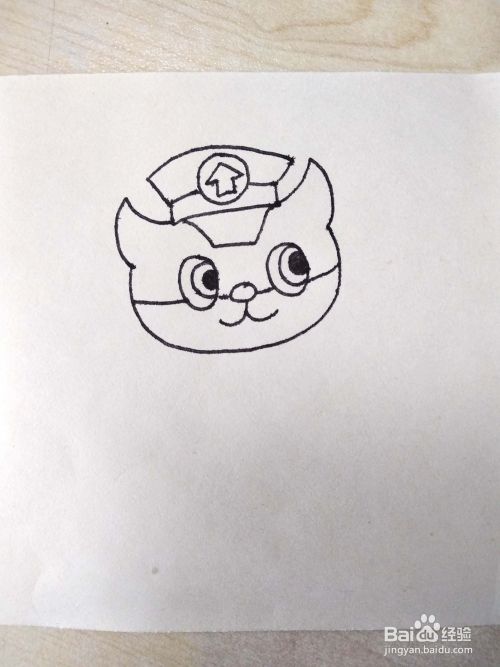 接着画出黑猫警长的眼睛、鼻子、嘴巴
