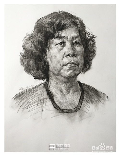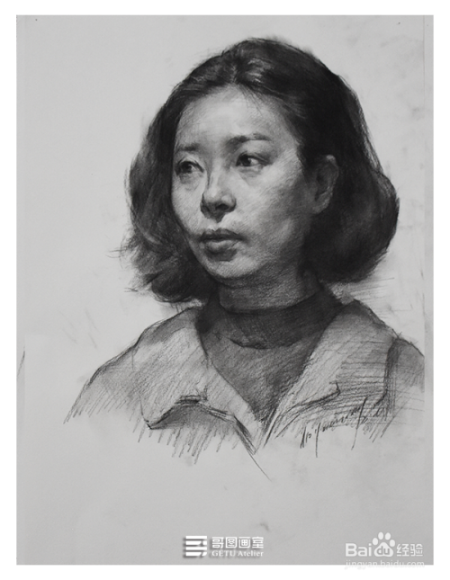 素描头像中比较难把握的是五官的相对位置空间层次的凸显。所以素描头像第二步要找出明暗交界线,确定亮面和暗面,在画的过程中注意左右结构的对比,不要画出笑话,并且时刻注意点线面的联络。
