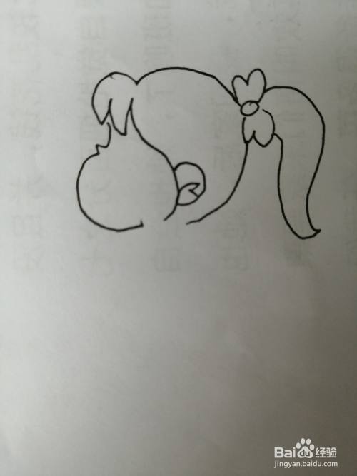 第二步,接着继续画出简笔画可爱的小女孩的可爱的小辫子。