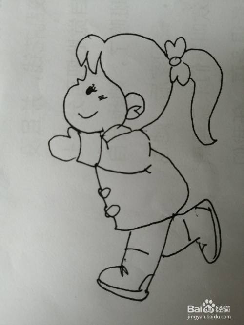 第四步,然后把奔跑的可爱的小女孩的眼睛和嘴巴画出来。