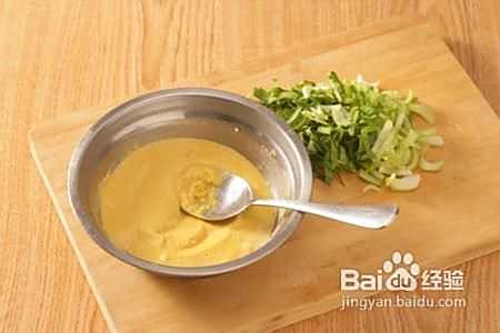 小油菜切碎末;玉米面加入少许冷水调开、搅拌均匀。