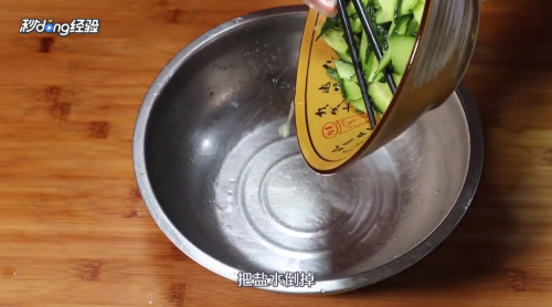 黄瓜中的盐水倒掉。