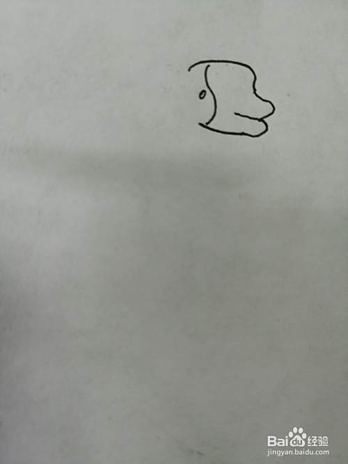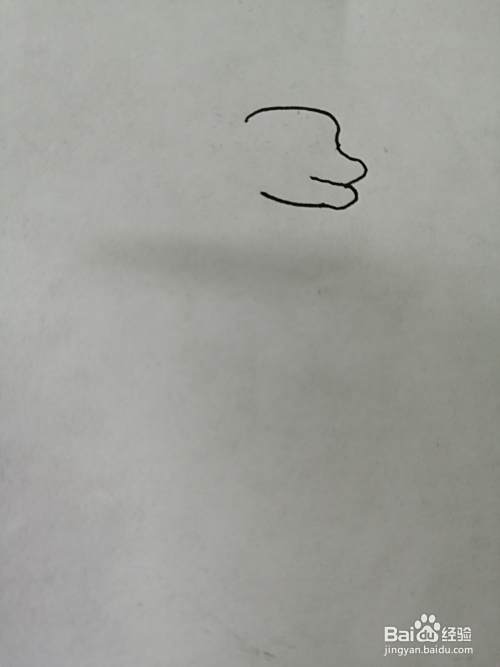 第一步,我们先画出大白鹅的头部轮廓,两条弧线。