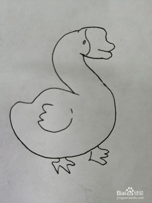 第七步,最后把可爱的大白鹅的两只小脚画出来。简笔画可爱的大白鹅就画好了。