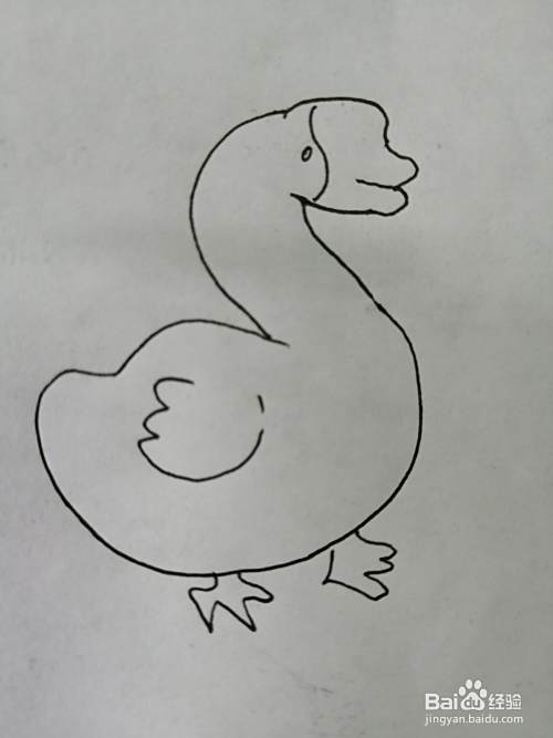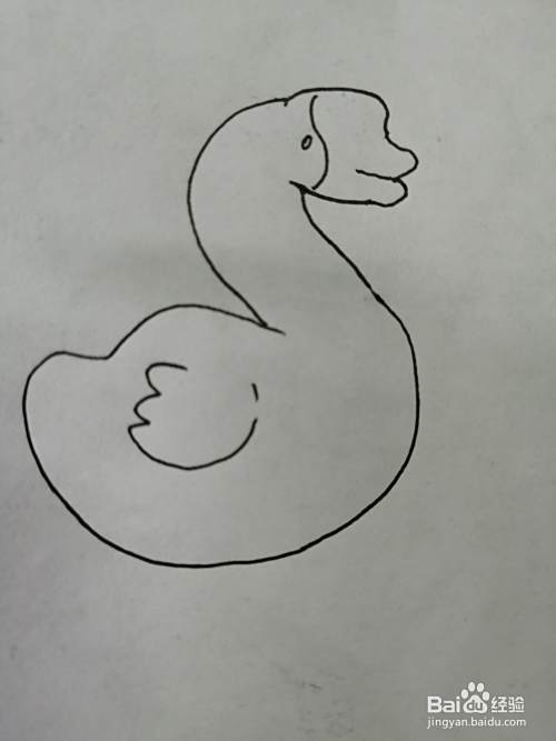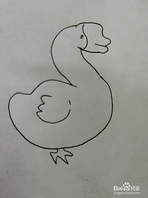第六步,接着在大白鹅胖胖的身体里面画出一个小翅膀。