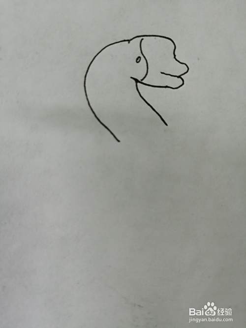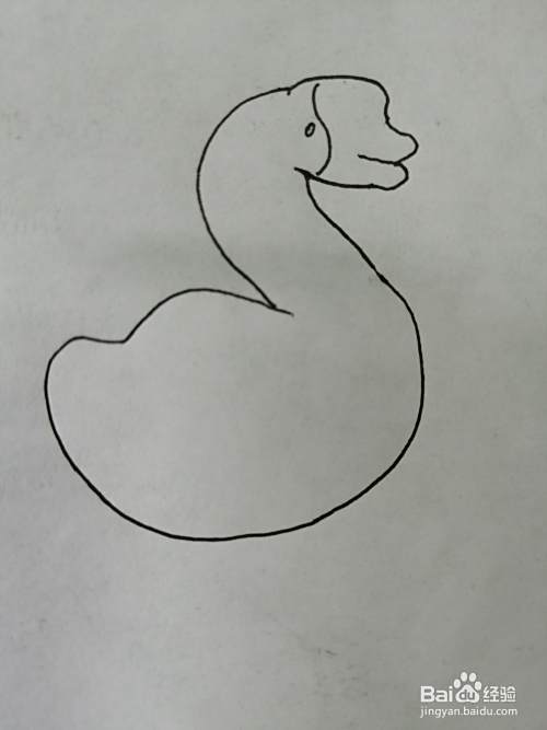 第四步,接着在大白鹅的头部下面画出长长的脖子。