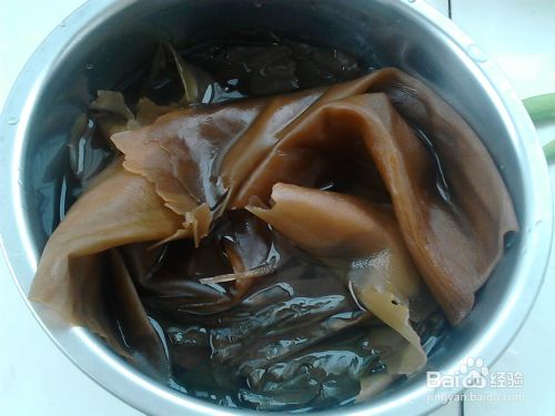首先海带是非常难清理的,所以要提前将海带用沸水煮好,然后用清水冲洗数遍,洗干净为止。