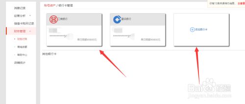 点击左侧的银行卡管理,可以添加删除对银行卡进行管理。