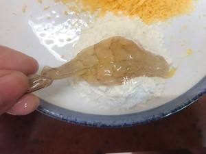 8,裹上蛋液,再裹一遍酥香炸粉,再裹蛋液。