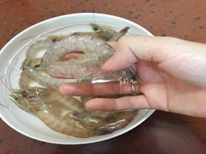 用刀把虾破开,不要破断了,留下一点点粘连部分