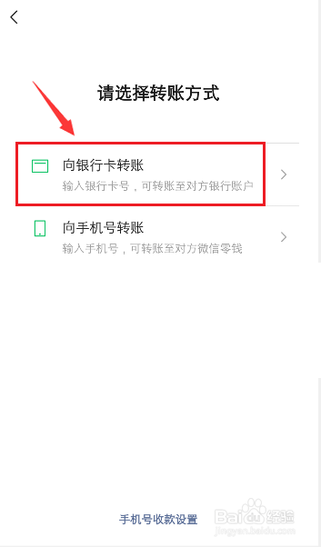 在转账方式,点击“向银行卡转账”。
