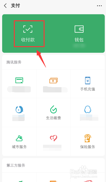 在支付页面,点击“收付款”。