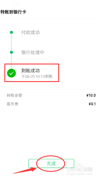 支付成功后,就可以看到微信银行卡已经转另一个银行卡了。