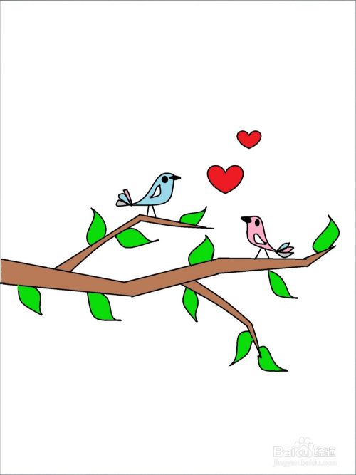 然后在两只小鸟时间画出两个爱心,最后涂上自己喜欢的颜色就OK了。