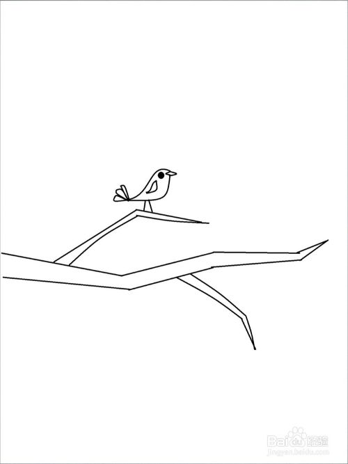 然后在小树杈上画出一只小鸟的轮廓,然后画出眼睛、嘴巴还有翅膀。