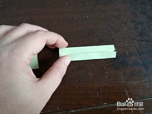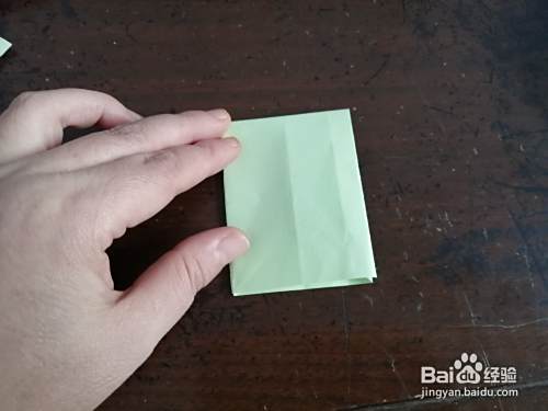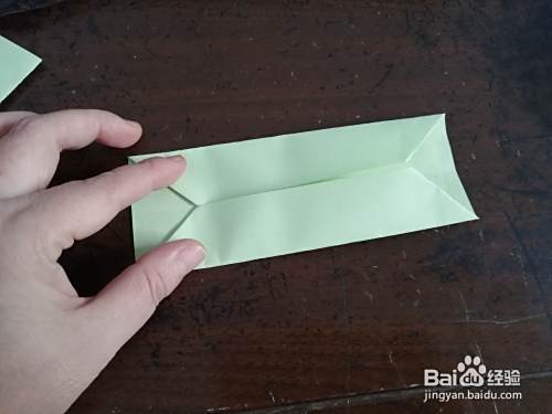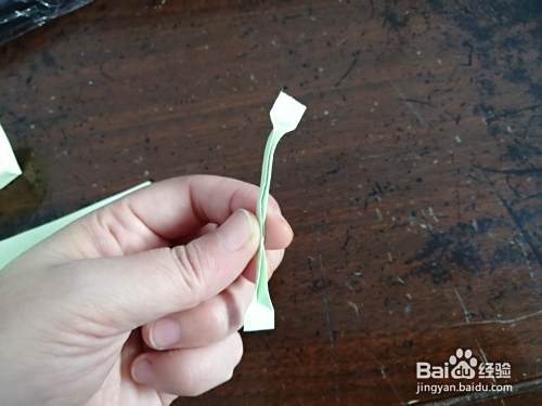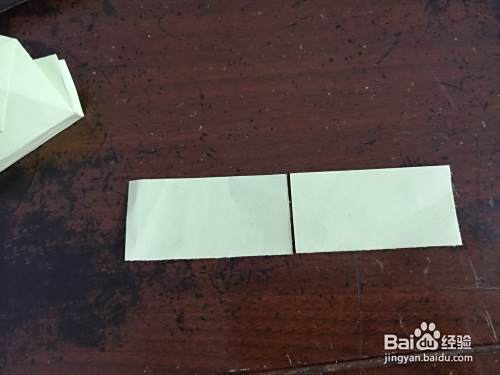 我们再把彩纸中间继续对折,把两头捏平,如图三。另一张彩纸同样操作,如图四。