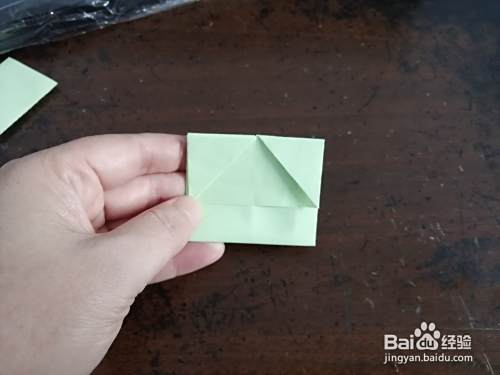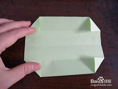 把两侧的中间部分向外拉,如图二。然后吧剩下的彩纸裁成两份,先把一张对折后,把两侧的边向内折。