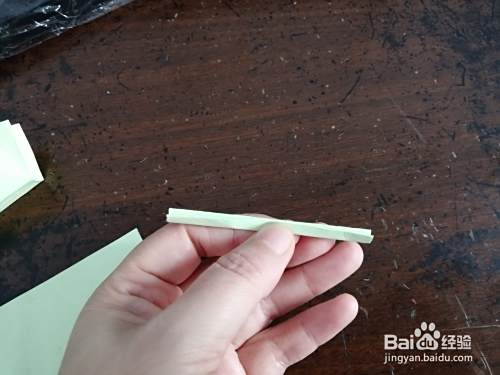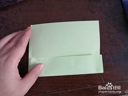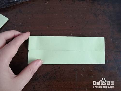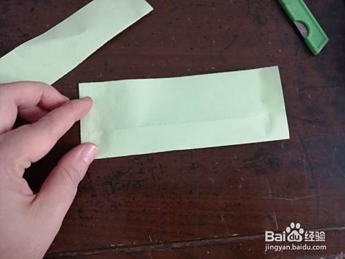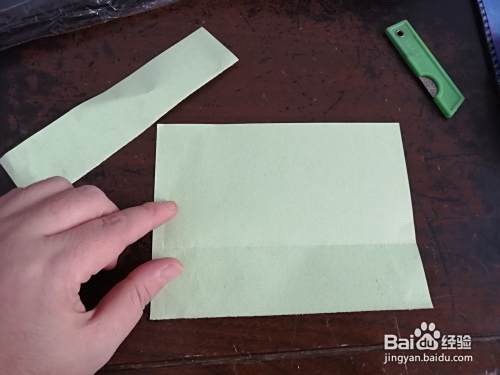 我们先把彩纸对折,把下侧的边向着中线对折,用裁纸刀把纸裁开。