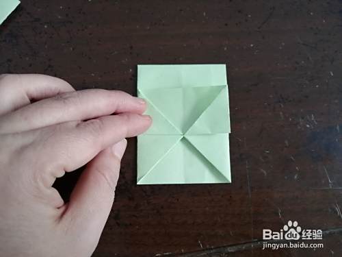 把上边的四个角折到里边去,如图二。打开后,把四条边分别向内折,折好后就是图五的样子。