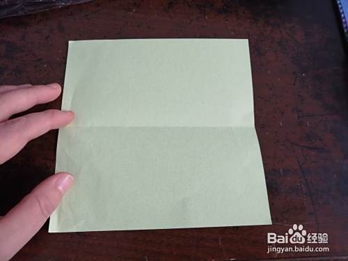 我们把彩纸中间对折,把上下边向内折,打开后再把四个角向内折。继续把彩纸回位,把中间对折。