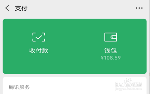 打开微信,点击右下角“我”,进入支付界面,如图示界面。