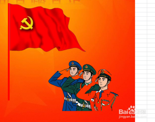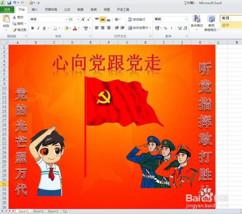 3.图画最中央的位置画一个党旗。寓意党是各个部门的中心。