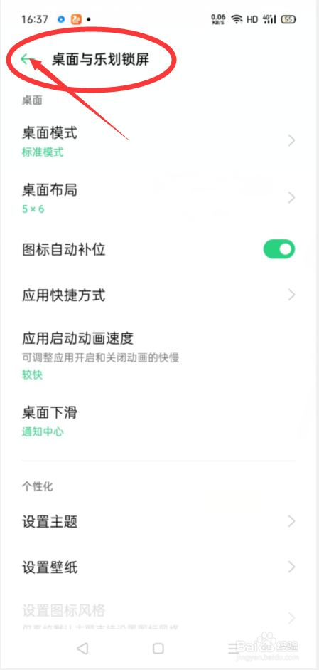 接下来,我们在进入桌面与乐划锁屏设置界面后,我们点击桌面布局,我们进入桌面布局设置界面;