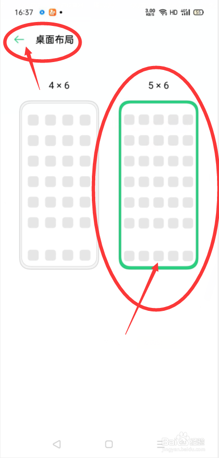 接下来,我们在进入桌面布置设置界面后,我们选择我们所需要的桌面布局,接下来,我们直接点击该界面左上角的返回按钮;