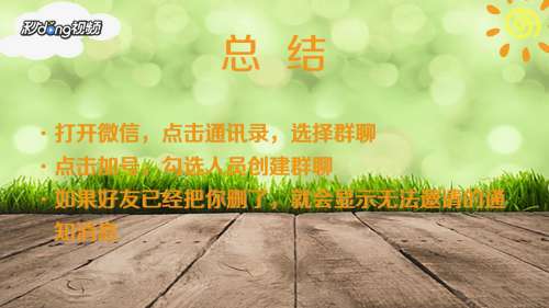 4总结如下:打开微信,点击“通讯录”,选择群聊,点击“加号”,勾选人员创建群聊,若邀请成功,好友没有将你删除,如果好友已经把你删了,就会显示无法邀请的通知消息。