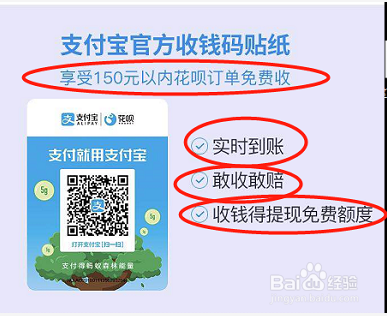 点击”立即查看“后会显示支付宝官方收钱贴纸,此收钱码收钱免费、提现免费、实时到账。
