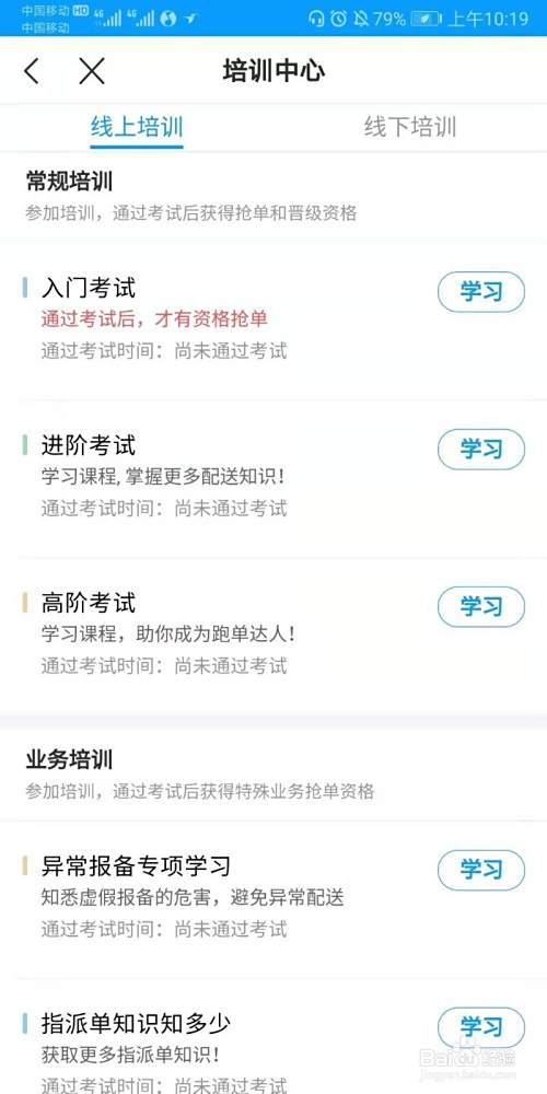 完成入门考试:点击”培训中心“,完成好入门考试。入门考试题一般比较简单,题库单一,如果一次考试没过,可以多试几次。