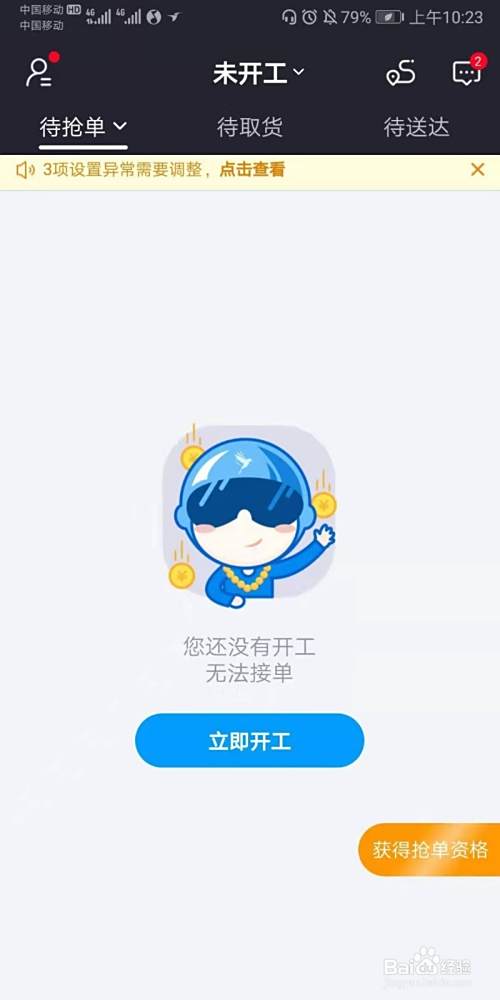人脸识别,开始接单:点击立即开工,每次开工前都是要人脸识别的,所以一定要用个人身份证,否则注册成功了也没办法使用。