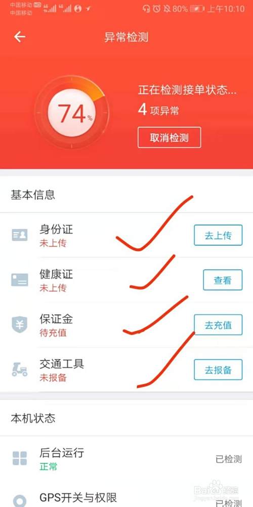 完善个人资料:点击左上角按钮后,会进入个人中心。这时候点击”异常检测“,会出现基本信息页面,一一上传完善个人信息。
