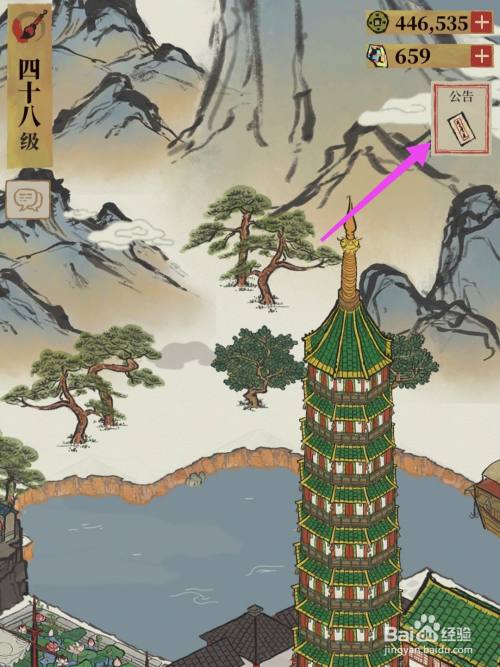 第一、进入游戏主页后,点击打开“公告”;