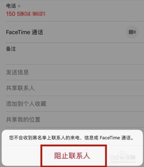 点击阻止联系人就可以了。这样操作完成,我们就把这个号码永久拒接了。