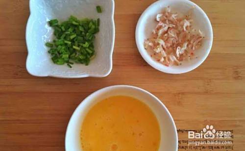 首先将香葱洗净,切成葱花,虾皮放滤网中冲洗1分钟沥干水分,鸡蛋2个打散备用。