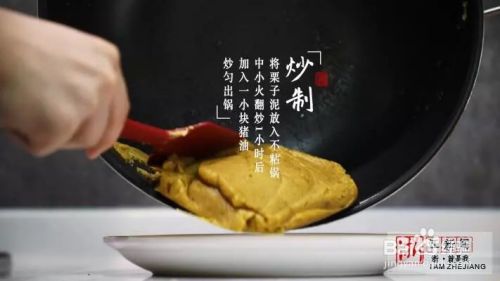 得到栗子泥,放入不粘锅中翻炒成团,出锅前加一小块猪油炒匀。