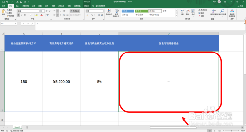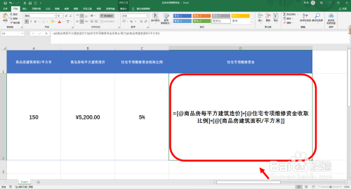 接着用“商品房每平方建筑造价”乘以“住宅专项维修资金收取比例”。