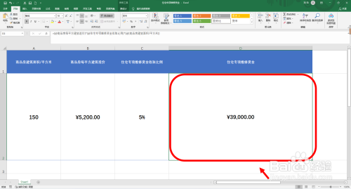 最后按enter回车键确定,计算得出住宅专项维修资金。这样就算好了。