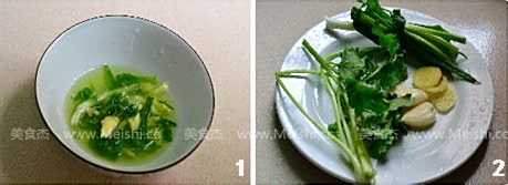 剩下的香葱打成结,姜切片,大蒜拍破,香菜洗净待用