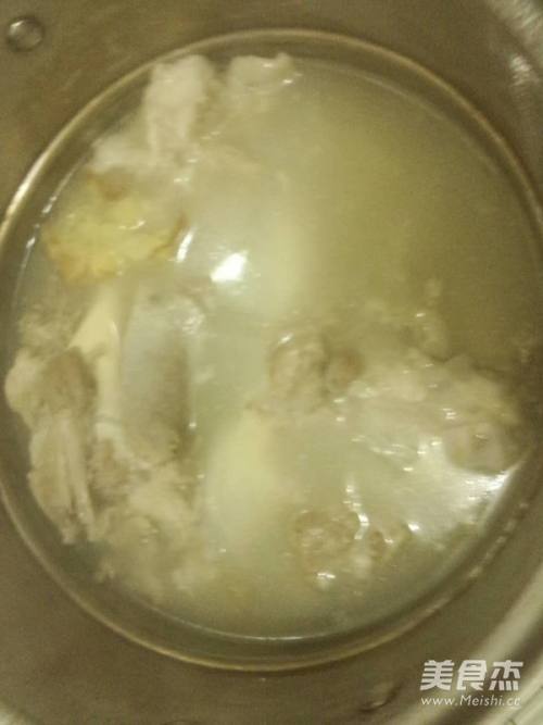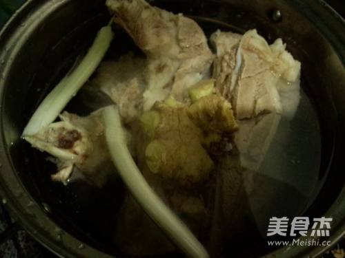 1买的时候就让他们给敲断,洗净的大骨放锅中焯烫后再次冲洗干净,锅内放超过骨头的水,稍微多加些,不要中途加水,那样影响烫的颜色。把姜拍散,葱切段、几滴白醋、食盐放进去,大火烧开后,小火慢炖大约3-4小时,我用电磁炉具有的炖汤模式,就不用管它了,到时间关掉就可以