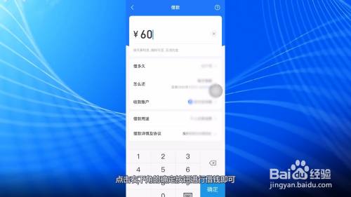 输入借款的金额,设置借款相关事项,点击右下角的确定按钮进行借钱即可。
