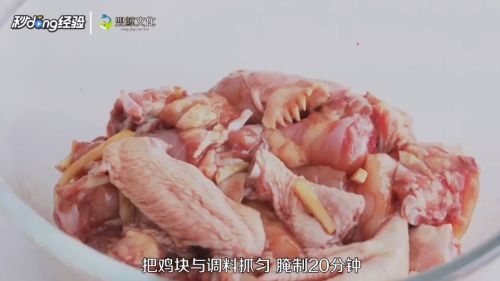 4把鸡块与调料抓匀,腌制20分钟。