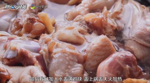 6加入水没过鸡块,盖上锅盖大火加热。